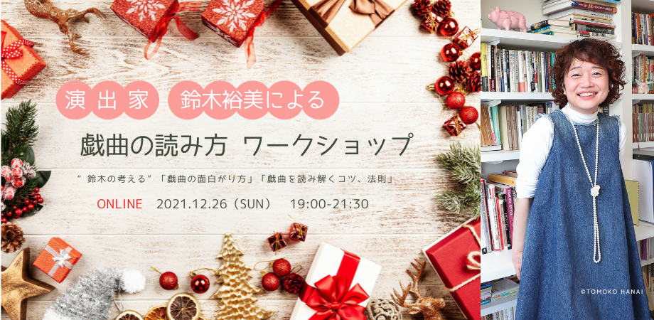 ”鈴木裕美の考える”「戯曲の面白がり方」や「戯曲を読むコツ」あるいは「法則」、どの戯曲にも当てはまるであろう、大きな捉え方を2時間半でお話しするオンラインワークショップ、12月開催のお知らせです。https://suzukiworks1226.peatix.com/